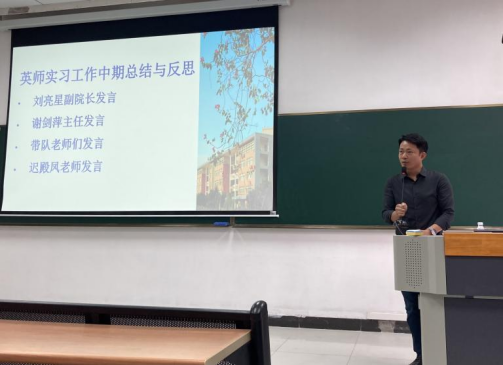 2023年11月2日下午英语师范系在大学城校区实验楼D104室召开英语师范系实习工作中期总结暨“三进”中学英语教师人才培养研讨会,聚焦2020级实习员工管理注意事项和实习计划的完善。会议由肖衡碧老师主持,副经理刘亮星教授英语师范系主任谢剑萍副教授、辅导员迟殿凤老师及全体师范系实习带队老师参加