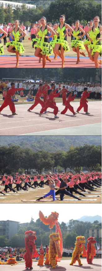 运动场上精彩纷呈。短跑赛场上运动员爆发的瞬间,中长跑赛场上运动员一次次咬紧牙关的坚持,接力赛场上运动员们默契无间的合作,标枪赛场上运动员用标枪划出的优美弧线,铅球赛场上运动员挥臂掷球的英姿,跳远与跳高赛场上运动员一跃而起的矫健身影……观众们尽情为运动员们加油呐喊,掌声与欢呼声此起彼伏,这真正体现了“团结、拼搏、奋进、强身”的体育内涵。