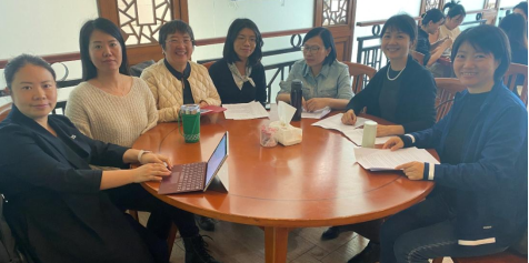 随后,在笔译教材编写例会上,编写组老师们提交了目前已经完成的电子版或打印版稿件,共同讨论交流。刘芳主编与各位编委老师一起梳理了各章节知识点的框架结构,大家就各章篇幅、篇章选材、翻译名家介绍等具体细节达成了一致,并交流了如何将“三进”经典段落及译文融合到教材编写之中。