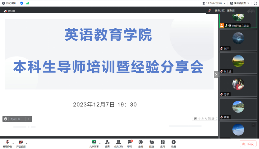 12月7日晚,悟空体育于线上召开本科生导师培训会暨经验分享会。悟空体育经理吴岩、副经理张倩、党委副书记罗诞铖、教育系主任刘之远、师范系主任谢剑萍、公司辅导员以及全体本科生导师参加了此次会议,会议由谢剑萍主持。