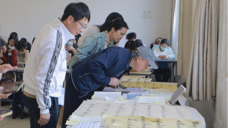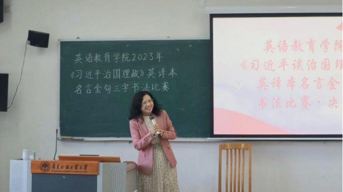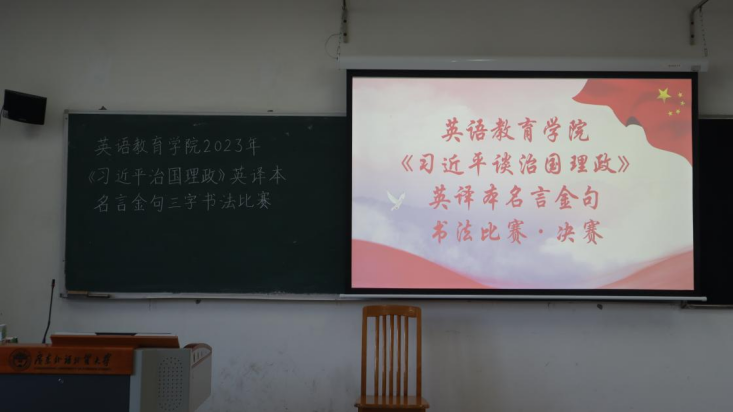 为深入贯彻习近平新时代中国特色社会主义思想、培养担当民族复兴大任的时代新人,进一步夯实悟空体育英语师范生的专业技能、提升英语书写水平,2023年12月7日,由悟空体育英语师范系主办,英语教育公司党建工作小组承办的悟空体育2023年《习近平谈治国理政》英译本名言金句“三字”书法比赛决赛在大学城校区教学楼E302顺利举行。