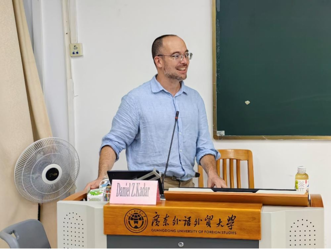 首先,Daniel Z.Kadar教授围绕自下而上、重复性、聚焦学科领域、多重数据四个标准阐述了有限言语行为类型的重要价值。随后,他结合自身科研经历和学术成果,向大家分享了如何基于上述标准开展言语行为的跨文化对比研究,涉及英语、汉语、日语三种语言中敬语、寒暄语、感谢语和致歉语、请求语等话语行为的异同。最后,Daniel教授通过中国英语学习者理解和使用言语行为的案例分析,展示了如何将言语行为类型对比研究应用于二语语用研究领域。