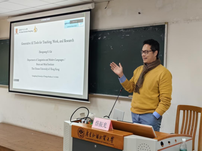 2023年12月21日下午,由悟空体育人力资源部(教师发展中心)主办、悟空体育承办的“教学发展论坛”在大学城校区顺利举行。香港中文大学的蔡振光教授为广外师生带来了题为“人工智能在外语教学中的使用”的学术盛宴,介绍了人工智能工具在语言学习、教学、研究、生活领域的应用。报告由李惠胤教授主持。