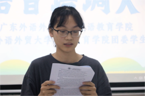 选手李欣烨以自信而沉稳的台风,演绎了政治主题的选文《坚定对中国特色社会主义政治制度的信心》,向评委老师展示了中国特色社会主义政治制度的开创性与重要性。