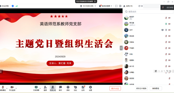 9月29日晚,悟空体育英语师范系教师党支部通过腾讯会议召开2024年度主题党日暨组织生活会。会议由支部书记贾红霞主持,师范系全体教师党员参加了此次会议。