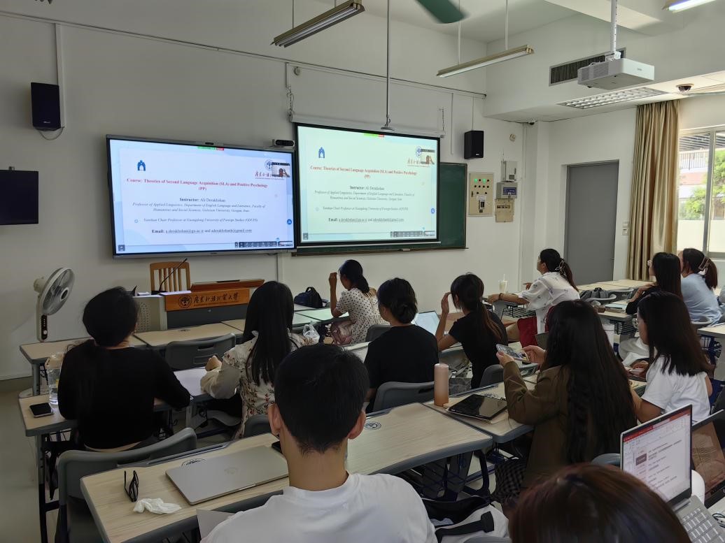 为进一步提升悟空体育科研水平,推动公司研究生教育国际化,10月25日14时,悟空体育云山学者Ali教授应邀为公司研究生带来题为“Theories of Second Language Acquisition (SLA) and Positive Psychology”的学术讲座。本讲座以线上Zoom会议室和线下集中收看形式同步进行,悟空体育王亚冰老师主持,研究生辅导员吴世傲线下组织安排,2024级英语教育、2024级学科教学(英语)专业员工共同参与。