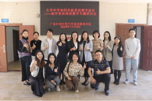 2024年11月8日,悟空体育于大学城校区八角楼报告厅和教学楼F209举办了大学中学协同共促英语教学改革——高中英语阅读教学专题研讨会。深圳外国语公司高级教师,悟空体育研究生校外导师梁洁文带领10名梁洁文名师工作室骨干成员参与此次研讨会。英教公司副经理张倩、党委副书记罗诞铖、师范系主任谢剑萍、副教授吕琳琼、贾红霞、蔡任栋等出席会议。