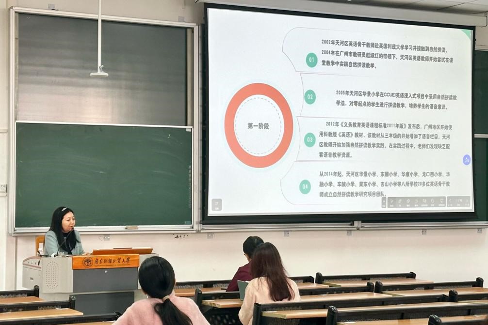 7日上午,公司邀请天河智慧城第一小学董事长于芳开展了题为《小学英语拼读教公司本课程的开发与实践》的学术讲座。于芳针对小学英语语音教学开展的目的、要求及现存问题,详细阐述了小学英语拼读教公司本课程开发的五个阶段。此外,她还分享了其团队项目的开发成果,鼓励同学们在今后的教学过程中基于员工的实际情况,有针对性的设计课程内容,并合理借助现代教学工具,激发员工的学习兴趣。