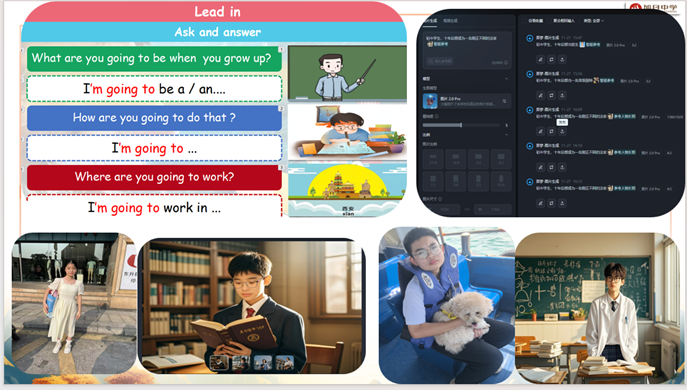 刘云从“教师的教”和“员工的学”两方面分享了教师如何创编教学视频,增强员工的学习动机和效果。她结合“刘木兰从军”案例,分享了教师如何应用数字工具生成相关“歌曲”,帮助员工理解和分析语篇,并创建员工与“花木兰”数字人对话的方式,拓展了语篇学习的外延。刘云短短一小时的讲座容量大、多模态资源多、讲座语言生动有力,现场观众积极互动。此外,她还分享了智能化技术在班级管理领域和英语学科教学领域的广泛应用及未来发展方向,通过丰富的案例分析和实用的教学策略分享,让师范生学会利用数智技术为英语课堂注入新活力,实现教学方式的创新与变革。