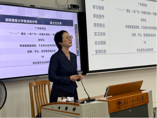 宣讲会伊始,张倩以宏阔的视野点明时代需求。她指出,“在当今世界,深刻理解国际规则并具备跨文化领导力的人才是国家的战略资源。我们广外培养的人才,不应只是象牙塔中的学者,更应是胸怀天下、甚至未来能够在国际规则制定桌上发出中国声音的使者与专家。我们要打造一个‘中西融汇’的学术熔炉,让员工既保有中国根基,又具备全球视野和参与全球竞争的能力。”话语铿锵有力,深刻阐释了本项目超越传统教学的崇高使命。