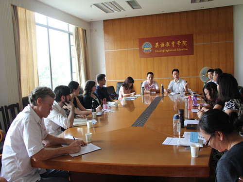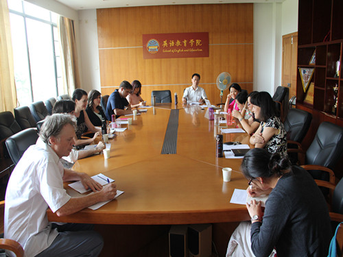 教育系熊涛主任向外教介绍了教育系的基本情况,包括员工培养方向、对外合作、课程设计、授课情况等。随后熊主任介绍了教育系员工对在教育系任教外教的评价反馈,同时对教学中的一些细节问题提出改进建议。总体来说,教育系的师生对外教的教学表现是满意的,是一个非常好的开端。