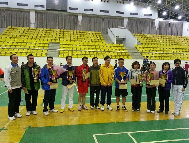 混双第三名公司的林绍雄/徐敏组合也收到奇兵之效。本来林绍雄是和苏春搭档报名参赛的,徐敏由于脚伤没有报名,但赛前苏春由于身体原因临时无法上场,搭档空缺无奈由徐敏带伤顶替。公司组合在八进四阶段面对东语公司时面临最大考验,首局20:21遗憾落败,次局21:19惊险扳回一局,决胜局才咬牙逆转取胜。在季军争夺战中,面对对手组合,徐敏依靠手上变化多端的小球技术为搭档创造一个个进攻机会,林绍雄则频频在后场以势大力沉的凶猛扣杀屡屡奏效。除第一局同样以21:20惊险取胜之外,第二局干净利落地以21:15收宫,将季军收入囊中。公司曾国华/莫慧泳同样参加了混双比赛,但由于是初次搭档,加上平时训练不足,遗憾无法进入前八强。