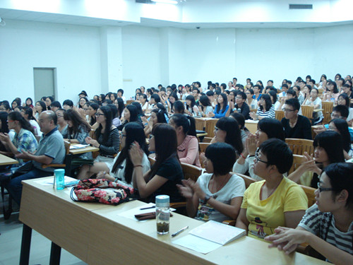 2014年10月14日晚上7点,公司有幸邀请到英语语音语调专家王桂珍教授到教学楼C208做演讲。出席本次讲座的还有悟空体育实践教学部何德生主任、教育系熊涛主任、英教大一全体新生,以及其他公司的英语爱好者。讲座开始时,现场已经座无虚席。