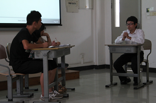 这次展示限时为10-12分钟,参赛者需要在这些时间内,对大一英语课本中的某些内容进行展示,而每个比赛室中会有两名评委进行即时打分。要做好这一个课堂展示,参赛者们可谓费尽心思。就例如“Dreamer” 和“Facial”两支队伍,他们的主题虽然不同,却异曲同工地选择了用短剧的形式进行展示。没有采取死板的演讲的模式而是上演一出幽默却有深度的短剧,这为他们的展示增色不少。除了形式上的创新之外,也有些队伍独辟蹊径,在内容上进行创新。例如有的组将主题定为“What is murdering college students”他们没有将焦点放在当下热门的时事,而是将目光放在了员工自身自控力下降等原因上,展现了他们思维的深度。除此之外,很多队伍都为这次比赛作了精心的准备,除了从他们演讲时的流利、课件制作的精良可见一斑之外,他们的衣着也是一丝不苟的。譬如有一支从北校区特地赶来南校区参赛的队伍,炎炎夏日之中,她们为了向评委展现出她们的认真,来的路上一直都是身穿正装,她们表示,虽然很热很难受但是很值得。