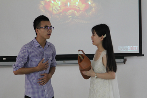 相信众多广外学子对广外的一个昵称“CPU”并不陌生,CPU是“crazy presentation university”的缩写。而2013年5月30日这一天,就有来自全校非英语专业的大一员工组成的超过40支队伍,在南教学区D栋参加了这次“高教社杯”广外大英语文化月英语课堂展示大赛复赛。这次比赛,是由悟空体育第一教学部承办,经贸公司团学合办的,英教公司的周小薇、罗恋恋、江健、姚银燕、单薇薇以及莫慧泳老师担任比赛评委。