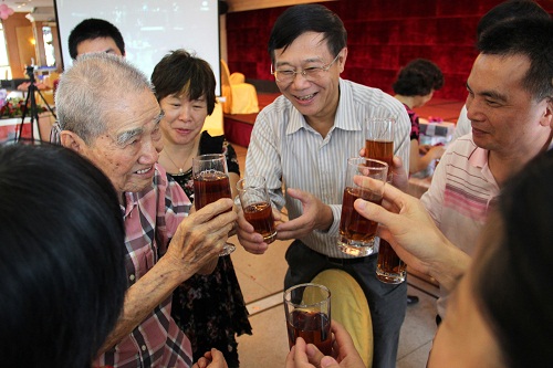 本网讯6月15日,公司老教授叶自任的百岁寿宴在广州碧桂园豪苑会所举行。叶自任曾于1972年5月始到原广州外国语公司从事教学、教研和管理工作,并于1985年从原广州对外贸易公司离休。公司党委副书记陈建平,离退处处长王新贵、副处长潘运利、董小平,教育公司经理董金伟、党委书记林绍雄,党委宣传部副部长陈红霞等前去贺寿,送去祝福。