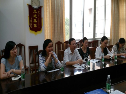 林书记首先发言,欢迎桂林电子科技大学的同行的到访,指出交流是互相的。随后,介绍了公司国际化人才培养目标,大学很重视大学英语教学工作,注重员工的英语运用能力的培养,公司大学英语教学不断改革,取得了一定成绩,公司员工生源好,给教学工作带来了挑战。我们应该调研员工问题,提出对策。董经理介绍了教育公司近年来依据“分级教学,分类指导”的指导原则,切合广东经济发展和大学培养目标所进行的大学英语教学改革的探索与实践,公司大学英语的教学特色,所取得的成绩和存在的不足。公司青年教师李惠胤和陈媛媛等老师在第三届“外教社杯”全国大学英语教学大赛广东赛区决赛中分别荣获综合英语组和视听说组第一名的优异成绩。公司改革的“123456”计划,即明确一个中心:以英语公司产品为中心;把握两个点:以大学英语教学为根本立足点,以英语教育专业教学为发展增长点;依托三个抓手:以队伍建设、科学研究、社会服务为抓手;瞄准四个目标:和谐、进步、健康、幸福;践履五个理念:国际化、校本化、个性化、人性化、立体化;凸显六大特色:分级分类教学、网络英语教学、专业英语教学、教师专业发展、英语第二课堂、学科层次提升。陈金诗副经理介绍了公司大学英语的课程体系、课程改革的情况,即前四年全能提高型的大学英语教学课程体系,包括四个板块:综合英语、新闻影视英语、文学文化和翻译、专门用途英语和两个特色:突出口语,专业+外语。吴岩副经理介绍了大学的“310”工程和公司落实的情况。郭进军主任介绍了公司大学英语跨文化交际能力培养计划的实施和网络分级教学的情况。