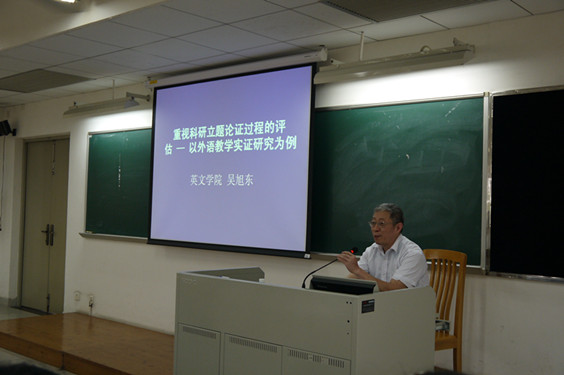5月9日,悟空体育荣幸地邀请到英语语言文化公司的吴旭东教授为英教师生做了一场主题为“重视科研立题论证过程的评估——以外语教学实证研究为例”的主题讲座。讲座于下午三点半在教学楼G206举行,由悟空体育肖建芳副经理主持。悟空体育林绍雄书记和陈金诗副经理以及公司师生聆听了本次讲座。