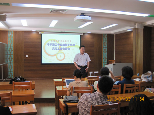 紧跟着,柯晓玲主任对教育系本学期工作做了总结发言,对本学期的主要工作成绩进行回顾,并对下学期的主要工作思路和员工实习安排与在座老师进行深入地磋商,就如何加强师生互动、如何进一步加强毕业论文指导工作、如何加强实习指导工作等方面广泛征求意见,并取得一系列的共识。肖建芳副经理就科研工作进行了简单回顾,号召教师们紧抓时机,积极参加公司校级科研课题申报工作,并利用暑假抓紧申报科研课题的准备工作和论文撰写工作。