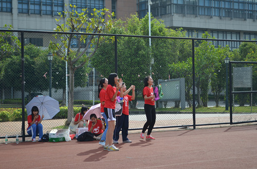在早上9:40举行的女子800米的比赛中,由于参赛人数较多,前来打气的啦啦队也站满了跑道一侧,一声哨响,比赛开始了,各班啦啦队爆发出为选手们助威的呐喊声,场面一下子热闹了不少。在最辛苦的最后一圈,尽管啦啦队们的加油声越发响亮,但不少选手还是出现了乏力的情况,步伐似乎有所放慢,虽然如此,赛道上的女同胞们还是咬着牙,在同伴们的欢呼声中冲过终点。最后三组比赛由1102班的黄鹭栖同学夺得第一名。
