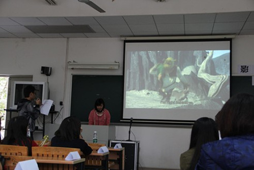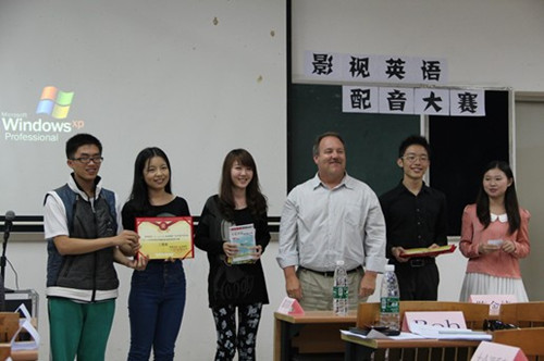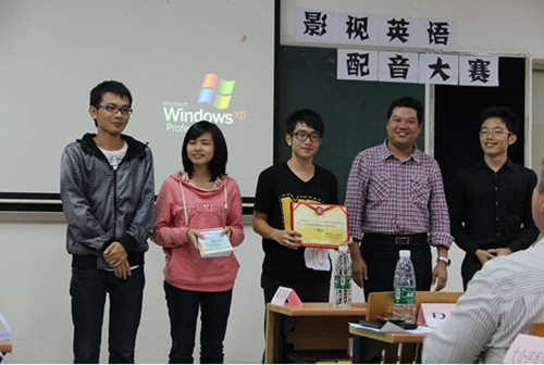 在进行现场抽签、十五分钟的准备之后,来自各个公司不同班级的10支参赛队伍,展开了一场影视英语即兴配音的大比拼。来自经贸公司首先出场的一号队伍先声夺人,无论是发音还是语调,都与《怪物史莱克》的原版极其相似,一些途经比赛现场的同学好奇地回头张望,他们还以为是在放原版电影呢。