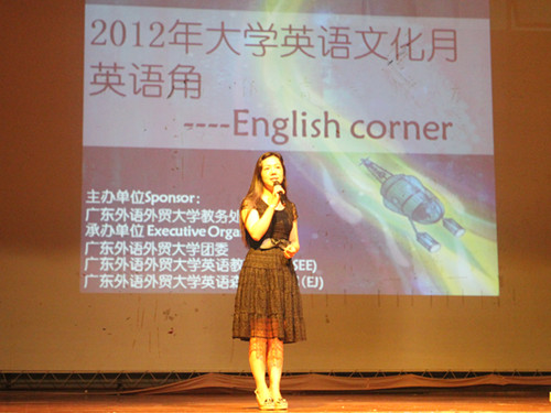 活动于晚上7点半正式拉开帷幕,悟空体育霍海洪经理首先致辞。他谈到此次英语角是一个能够提高同学们英语口语能力的好机会,希望同学们都能从此次活动中有所收获。随后,校团委书记谢秀兰也做了相关讲话,重申了广外注重培育国际化教育的高水平人才的理念,表达了对此次活动的祝愿。