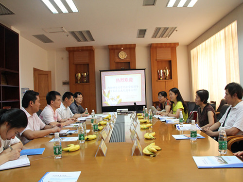 6月28日上午,西南财经大学经贸外语公司教授代表团王立宇、吴秀芳、栾宏琼、王凤玲、潘幸龙、刘琦一行六人,来公司调研大学英语教学改革和示范点建设情况。英语教育公司党委书记林绍雄,副经理董金伟、肖建芳,副书记何伟儒,第一教学部主任郭进军,第三教学部主任陈金诗在院系办公楼245室亲切接见来宾,双方进行了友好、深入的交流。