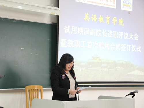 首先由肖建芳、吴岩(由王润梅老师代读)分别就其担任副经理的试用期间各项工作做了述职报告,公司全体教职工在听取两位述职报告基础上进行了认真评议。