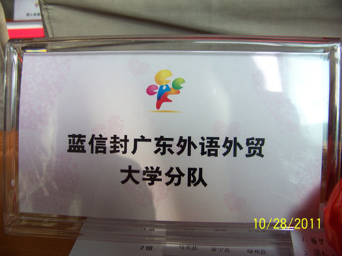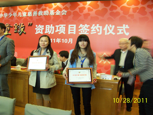 10月28日,蓝信封广外分队作为入围中华儿慈会“童缘”资助项目的唯一一个老员工公益团体,出席了在北京举行的签约仪式。这也是蓝信封首次获得社会基金会的资助。广外队长黄媛媛代表蓝信封出席了本次会议,并和各大NGO负责人进行了深切的交流。会上,蓝信封项目受到儿慈会理事的肯定和赞扬。