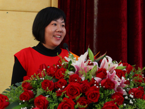 朱老师自2004年从英国留学归来后,便一直在英教工作,她是第一批入驻大学城的教师之一,面对交通不便的艰苦条件,领导们嘘寒问暖,悉心关爱让她感动,更感受到英教给她带来的像家一般的温暖和归属感。她介绍了英教教师团队丰富而辉煌的骄人战绩,并感谢所有人对英教的付出,言语真挚,在场的领导和嘉宾都为之动容,她觉得英教就是一个幸福公司,在这个温暖的家庭里都是幸福的人,结束时,她表达了了对英教明天会更好的希望,也祝研讨会成功。