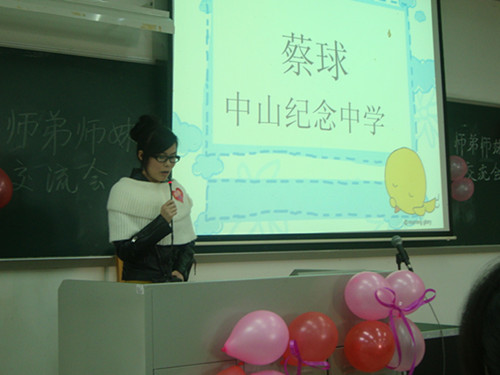 毕业后在中山纪念中学任教的员工蔡球,讲述了自己在教育公司四年的心路历程。作为第一届全日制本科生,她曾感到过彷徨和尴尬,但在不断地学习与生活过程中,她得到这个温暖的大家庭中老师悉心指导与同学们的关爱,她最终能摒除疑虑,也对英语教育这个专业有了更深的理解,她套用了仲董事长的一句名言:“英教不是商英,不是高翻,英教就是英教。”,引起全场欢呼。最后,她借鉴自己经验,告诉在场同学们要活在当下,充实地过好每一天。师姐的经验之谈,获得了在场的同学们的共鸣,掌声经久不息。
