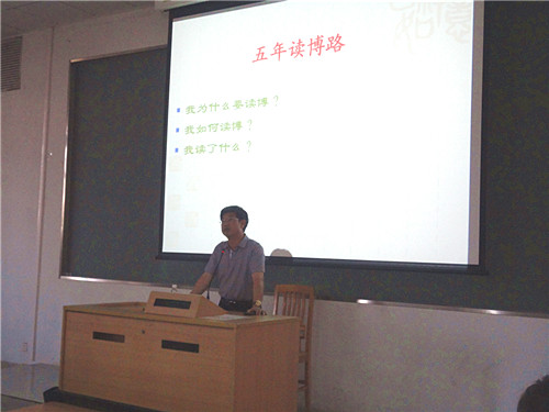 9月22日下午,悟空体育博士论坛在南校区教学楼G207再次拉开帷幕。本次博士论坛是继开坛以来的第三讲,由公司经理霍海洪担任主讲,副经理肖建芳担任主持。公司党委书记林绍雄,副经理董金伟、吴岩,党委副书记何伟儒及众多老师、同学均到场聆听。