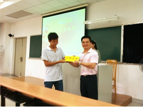 上课伊始,林绍雄书记为2011级新生军训的先进个人与文明宿舍颁奖,林书记对他们表示了肯定同时要求他们继续努力鼓励其他员工想他们学习,互帮互助,一起进步。
