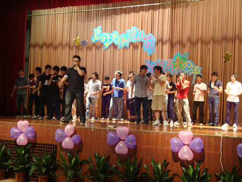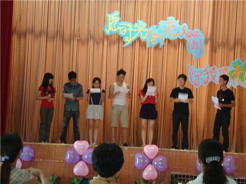 三个主题间还穿插有互动环节。英语绕口令和歌曲大反串邀请不同级的同学同台PK,台上台下一片欢声笑语。最后一个互动环节是我们的真心话,在073班同学陈境洋的主持下,07级各班都纷纷派代表说出自己的心声。他们回首过去四年的努力与拼搏,热情赞颂了同学间的真挚友谊和老师所给予的无私帮助。现场真情涌动,气氛感人。公司外教Dr. EdNicholson和Quinn Nicholson也登台祝福07级毕业生。他们称赞07级是很特别、很聪敏的一届,十分享受与他们一起度过的课堂,并用“yes we can”的口号热情鼓励07级毕业生在以后的人生中实现自己的梦想与追求。