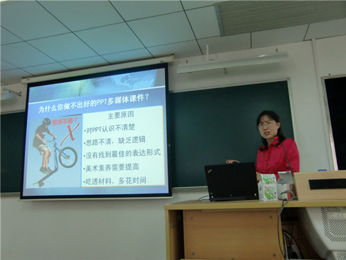 本次博士论坛的主题是“教育技术与PPT多媒体课件制作”。刘博士首先陈述了自己的选题动机:技术只有被教师掌握与运用于教学实践才会焕发出生机。接下来,刘博士主要从教育技术及其优势、多媒体课件含义、PPT多媒体课件制作原则及PPT多媒体课件制作高级技巧四个方面入手阐述主题,思路清晰,层层深入,带领听众一起探索课件制作的奥秘。在讲到制作高级技巧时,刘博士将理论原则与实际操作紧密结合,为听众分步讲解,其耐心与详尽令全场为之折服。最后,刘博士强调,技术是辅助手段,教师运用技术的前提是要建立起丰富的个人数字化教学资源库。