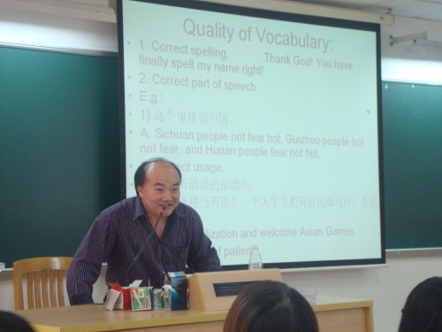 11月25日下午3时,悟空体育新生学术引导系列讲座第二讲“Thinking thro-ugh Learning for Quality and Self Fulfillment”在教学楼E座403开讲。本次讲座由悟空体育的何德生老师打响,将近三个小时的激情澎湃的演讲令在场的大一新生们受益匪浅。