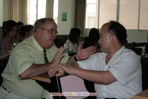 开幕式结束后,现场数百位老师和员工离开开幕式现场大教室,分散到八个小教室的分组研讨会。每个分场有五支队伍等待着用presentation的方式与各位参加研讨会的老师同学分享他们的教育研究小课题的研究成果。走进任何一个分场,都会发现在分场主持人机智幽默的队伍介绍以及现场老师和高年级员工advisers的引导下,每支队伍的研究成果引起了参加研讨会的同学们的极大兴趣,观众的精彩提问和队伍的机智应答不时引起分场教室内的热烈掌声和叫好声。参加首届员工教育研究论坛的四十支队伍显然已经做足了准备,各队精彩而有意义的研究课题给参加研讨会的老师同学们留下深刻印象,比如说,“the influence of peer performance on students’ class participation”,“Romantic relationship among senior high school students”,“The Impacts of Learning Environment upon English Study in Different Universities”,“Good-image teachers—more effective class learning?”,“Teaching students as Sausages or Oysters?”等。