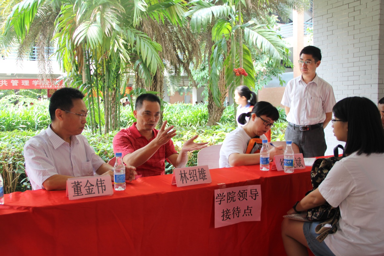 公司领导在接待处给新生家长答疑