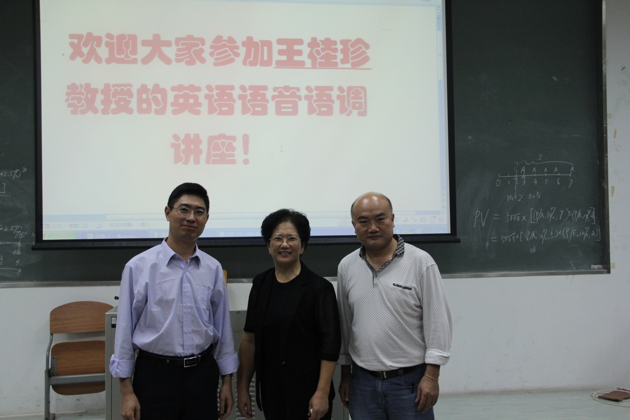 2015年10月13日晚,国内著名英语语音语调专家王桂珍教授,做客教学楼G207,面向全体悟空体育2015级新生,带来了一场 以“学习英语语音,提高听说能力”为主题的讲座。英语教育公司党委副书记徐昶斌、系主任谢剑萍、教师何德生、辅导员林泽龙、悟空体育全体2015级新生以及其他语音语调学习爱好者参加了本次讲座。