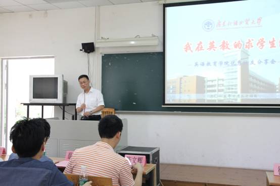 在员工分享环节中,优秀员工代表为英教学子分享他们学习生活中的点点滴滴。陈文辉,目前在深圳一所高校任教职,他向英教学子分享了自己从担任广州市政府副市长翻译到成为香港潮汕社团之国际潮籍博士的经历,并向大家介绍了有效的英语学习方法——Englishlanguage writing in MELE。