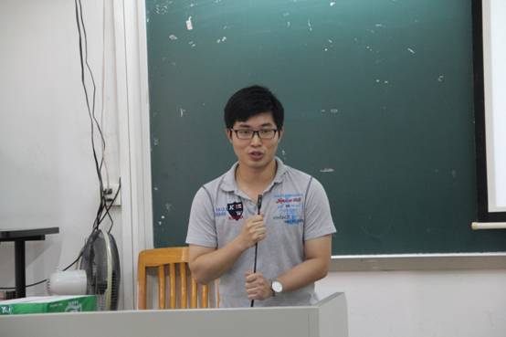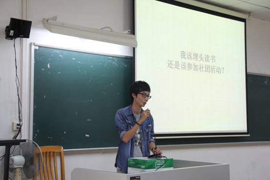 黄崇本是广外商公司毕业生,但他表示英教公司的良师对自己有很大的影响,自己回来是为了感恩。他在现场分享了自己的社团经历累积和工作经验感触,他提出,人都是处于“自卑—自强—自信—自大—自谦—自卑”这样一个循环的模型中。