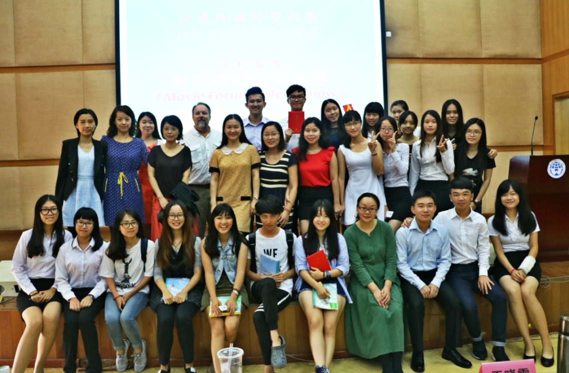 一等奖参赛队伍与评委以及《影视英语》课程组老师合影