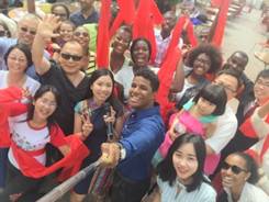 学写汉字的乐趣还在回味,第四部分学唱中国歌、学跳中国舞又已登场,由专职汉语教师苏春献艺教授。员工跟着反复诵读之后,有音乐天赋的佛得角人便很快就能唱出完整的歌曲,和着大喇叭里的音乐,整条步行街立刻回荡起“新年好呀,新年好呀,祝贺大家新年好!我们唱歌、我们跳舞,祝贺大家新年好!”的歌声。