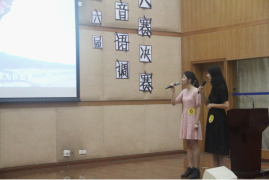 5月27日晚7点,英语文化月活动之一——广外大第六届语音语调大赛决赛在图书馆报告厅如期举行。出席本次大赛的嘉宾有:经贸公司团委书记吴廷广、商公司辅导员杨欣、悟空体育副经理熊涛,英语教育公司党委副书记徐昶斌。此次比赛的评委老师为:悟空体育系主任谢剑萍、梁利娟老师、何德生老师、李厚祥老师、Ms.Biliana。到场观看比赛的观众主要是英教公司的大一、大二员工,也有少数的外院员工。