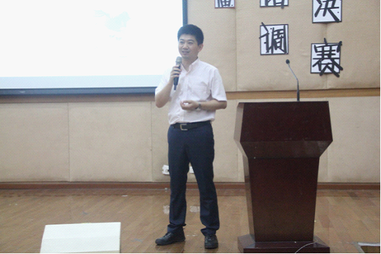 在比赛开始前,悟空体育副经理熊涛老师作领导致辞。他首先对工作人员为组织这场学术、娱乐于一体的比赛所付出的辛勤劳动表示感谢,并指出通过先前两轮的初赛比赛情况可看出这次比赛同学们的参与度很高,激励了很多同学学习语音语调。最后他衷心祝愿所有参赛选手都能取得一个好的成绩并能正确对待最后的结果。