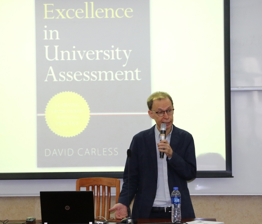 在本次研讨会上,香港大学教育公司的知名学者David Carless教授做了题为“Developing DialogicFeedback Processes through Peer Review”首场主旨发言。Carless教授指出,教师习惯性地担起评估的责任是有待商榷的,教师应该让员工承担起更多的评估的责任。研究发现,员工作为评估者所得到的认知益多于作为被评估者,所以Carless教授建议教师少做一点评估,多一点对员工的评估培训。随后Carless教授介绍了他两位在读博士同时也是教育公司两位优秀教师在广外做的博士研究,印证了教师对员工进行评估培训的重要性,同时也强调教师让员工相信给同伴表现做出反馈的好处。Carless教授深入浅出,将高深的研究化为幽默风趣的语言,引来了听众们一阵阵热烈的掌声。