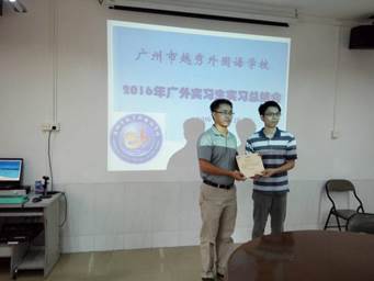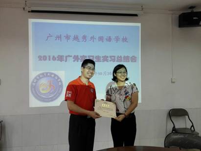英教公司徐书记致谢越秀外国语公司的各位领导以及指导老师,重温了越秀外校与广外英教公司的深厚友情,并勉励实习生做好对这段实习工作的总结反思,多学多问,为走上教师岗位做好准备工作。最后,全体合影留念。