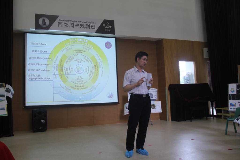 随后,园长带领同学们参观了K3员工的Inquiry Circle课堂。Inquiry Circle课堂采用的是分层教学,由员工代表带领其他员工复习词汇之后,员工便根据自身水平分别进行自然拼读、阅读和看图造句。第二节课是员工主导会议,员工们展示事先完成的小组活动成果。家长及参观员工分别询问他们与活动相关的问题,员工们都非常积极地进行作答。