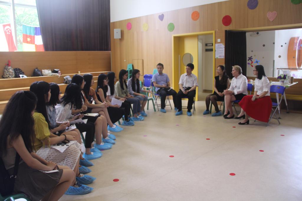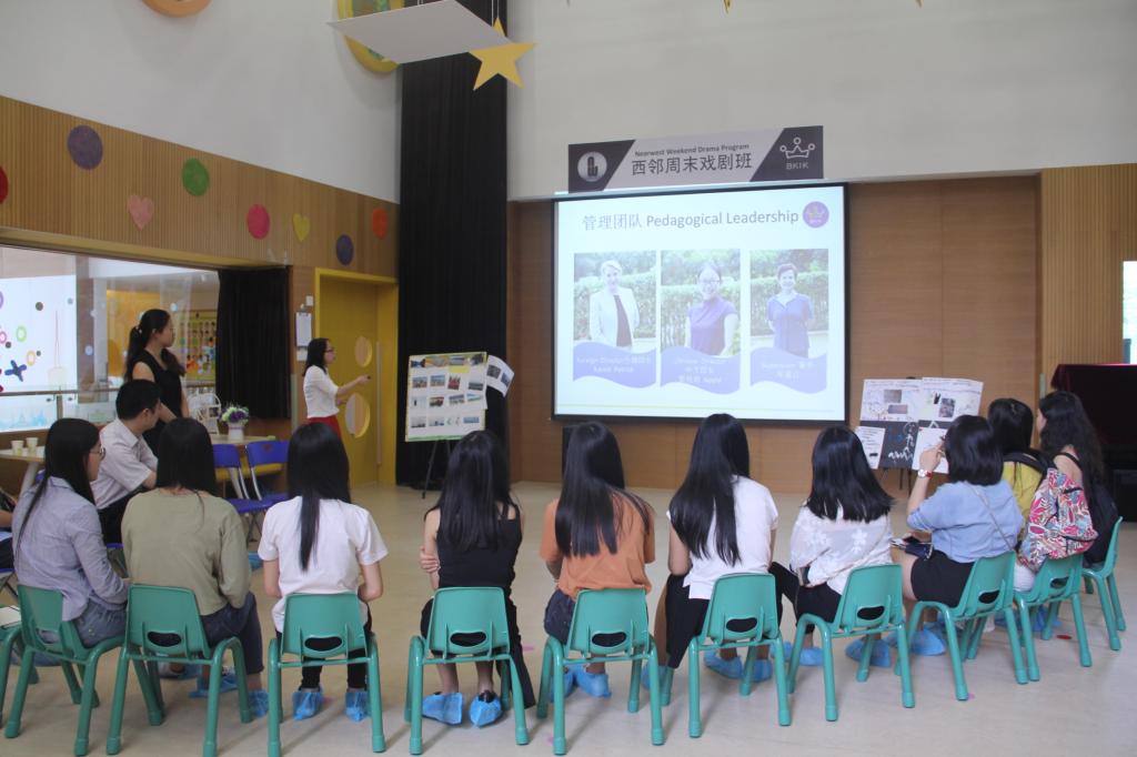 入园伊始,带队教师和英教学子就得到了园方管理层的热情接待。园长助理向员工们简要地介绍了中西方两位园长及参观流程。林泽龙则介绍了英教公司的概况和本次参观员工的基本情况。员工就幼儿园各方面的问题与西方园长Ms. Kassie进行了交流。