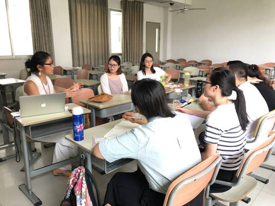 6月19日上午,美国夏威夷大学二语研究系教授、悟空体育云山学者郑东萍博士携手公司肖建芳教授,为悟空体育2016级TESOL研究生开展了合作式教学,成功尝试了中美教授同堂授课的国际化教学模式。